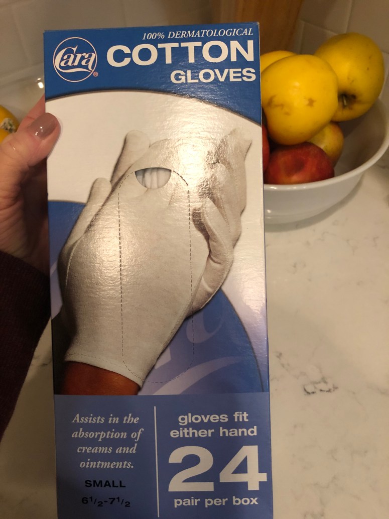 One of the main side effects the doctors want me to keep an eye on is developing blisters on the palms of my hands and the bottom of my feet.  That’s a very common side effect Xeloda for some reason (I have no idea why….and haven’t taken the time to find out).  As a result, I’m keeping my hands and feet moisturized all the time.  (I’ve been putting lotion on my hands/feet and then I wear socks/gloves for a few hours).  I read that if you sleep in the gloves you need a fresh pair every night, so I bought a 24 pack of cheap cotton gloves on amazon in case I need to sleep in them.  (See below)