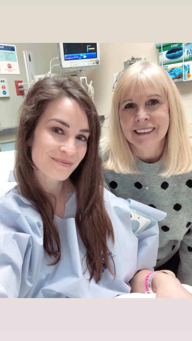 On to the surgery. Because it’s a busy time of year to have surgery (who knows why….insurance maybe?). The only open slot was at 3pm on Thursday. Practically speaking, that meant I would have to fast for a LONG time unless I wanted to wake up before 5am and have breakfast. Mmmmmmm no thanks. I feel like getting up at 4:30am for a 5am breakfast and then waiting around for a 3pm surgery would have just made me more grumpy 😉 So, I tried to sleep until around 7am that morning….I was able to get some work done the first half of the day (which helped so I wouldn’t think about food)….then we went to the hospital. By the time I checked in for surgery, the prolonged fasting without water was making me a TAD hangry. I’m sharing this because I’ll likely schedule future surgeries in the MORNING going forward 😁. Just a tip for anyone reading this! My mom was with me for the surgery. Here I am below, in total denial about what is about to go down. I literally just kept thinking about taking a nap and having dinner afterwards. Self preservation…..comes in handy.