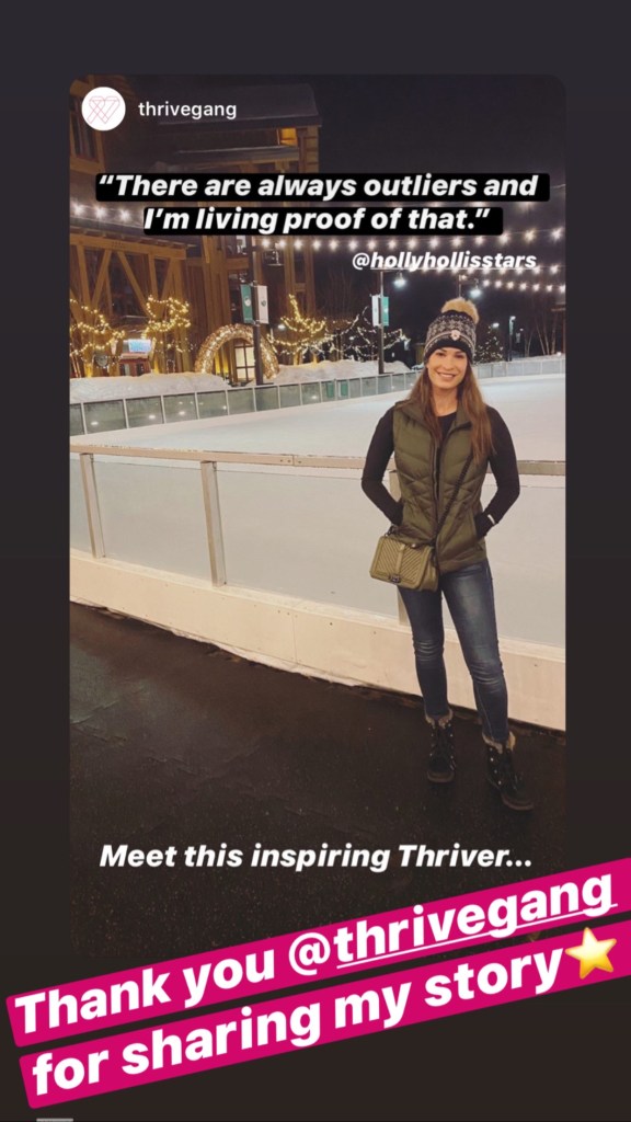 Overall, I feel lucky that this diagnosis forced me to take a hard look at my FAITH and my priorities, and to trust in the plan God has for our lives. I’m lucky to still be here, to appreciate the little things, to live every single moment and to love the people in my life. My name is Holly. I’m an attorney, a wife, a fighter, a survivor….and a THRIVER.