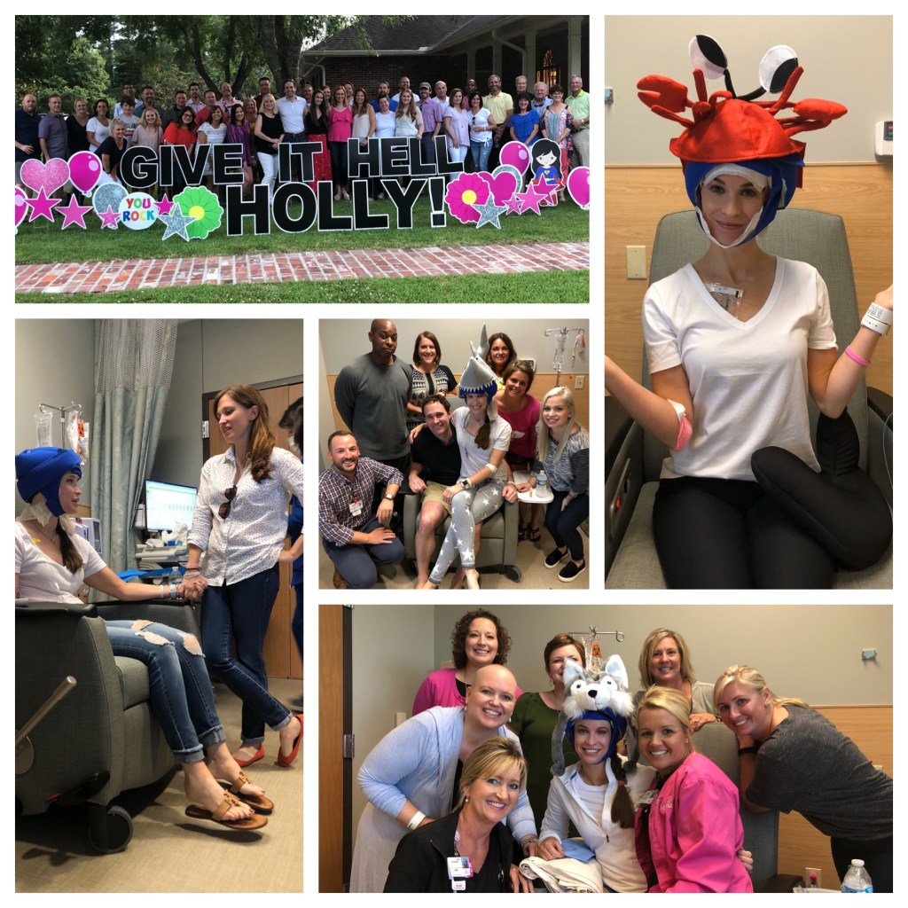 16. My #hollyannstrong and #HollyStarsStrong bracelets are still so special to me (my family and close friends are still wearing them actually). My friend Elizabeth’s and her husband Gray never take their bracelets off. In fact Gray has a legit tan line from his bracelet. That is commitment😁) I’m not sure when I’ll stop wearing my bracelet. Maybe at the 3 year mark?….maybe at the 5 year remission mark? It’s hard to think that far ahead. But, I’m just praying every day I can celebrate those milestones. You all know what the bracelets look like at this point 😉 Something else I’m holding on to is the sign (pic below) that is still outside of my office. I’m not taking it down until I hit 3 years without reoccurrence. It makes me smile every time I see it.