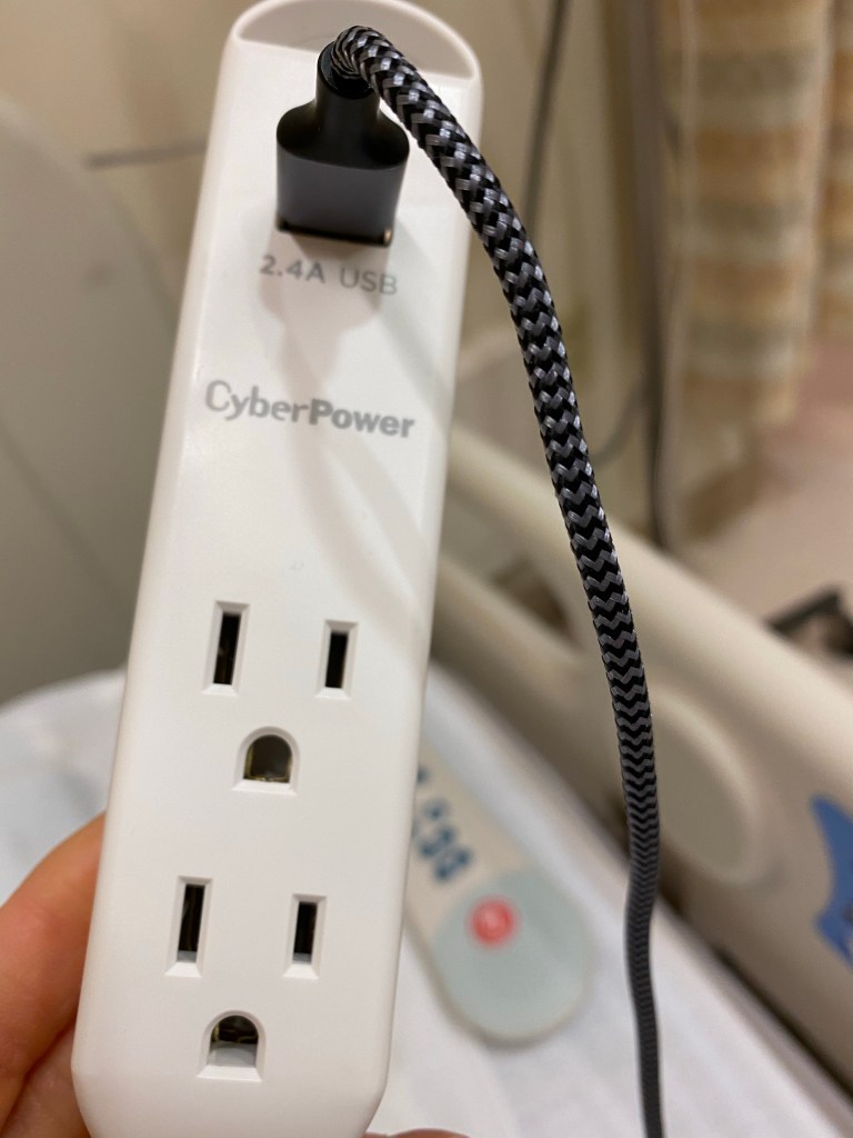 3. An extension cord with USB ports. This is crucial. I’m having my second chemo todayB (well. The first after my reoccurrence) . Anyway; this is what I’m using:!